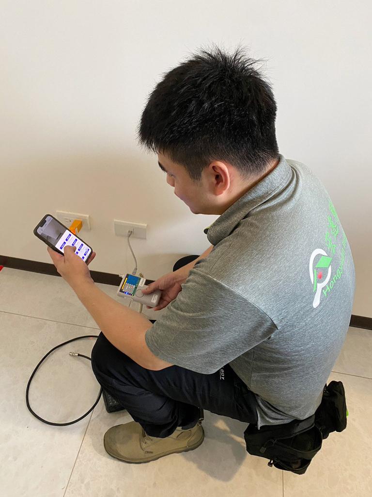 電視線測試是用一台小機器,插上去可以看電視代表有訊號~(師傅還轉台給我們看,覺得很有趣 xd